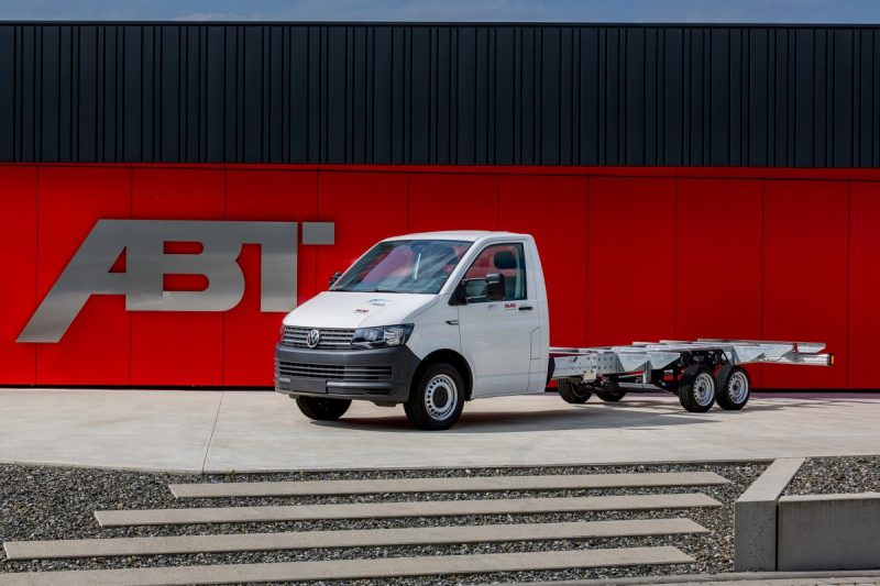Es handelt sich dabei um ein rein elektrisch angetriebenes Chassis mit der Fahrerkabine des VW T6. Auf dieser Basis können Gewerbetreibende unterschiedliche Aufbauten realisieren: als Kurierfahrzeug, selbstfahrender Marktstand oder als leichtes Baufahrzeug. Das ABT eCab kann dank seines 72 kW starken Elektromotors bis zu 1750 kg über eine Strecke von maximal 120 km weit transportieren. Dank des variablen Chassis von AL-KO Fahrzeugtechnik kann ABT auf Wunsch aber auch andere Batteriegrößen integrieren, je nachdem, welche Reichweiten erzielt werden sollen.